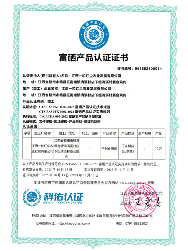 江西一粒紅塵農(nóng)業(yè)發(fā)展有限公司是一家總部位于江西省贛縣的現(xiàn)代農(nóng)業(yè)多元型企業(yè),專注于食用菌的研發(fā)、種植、深加工、貿(mào)易、研教培農(nóng)文旅等全產(chǎn)業(yè)鏈發(fā)展。公司秉承“健康、綠色、共享共贏”的核心價值觀,致力于引領(lǐng)鄉(xiāng)村振興之路,旨在成為......